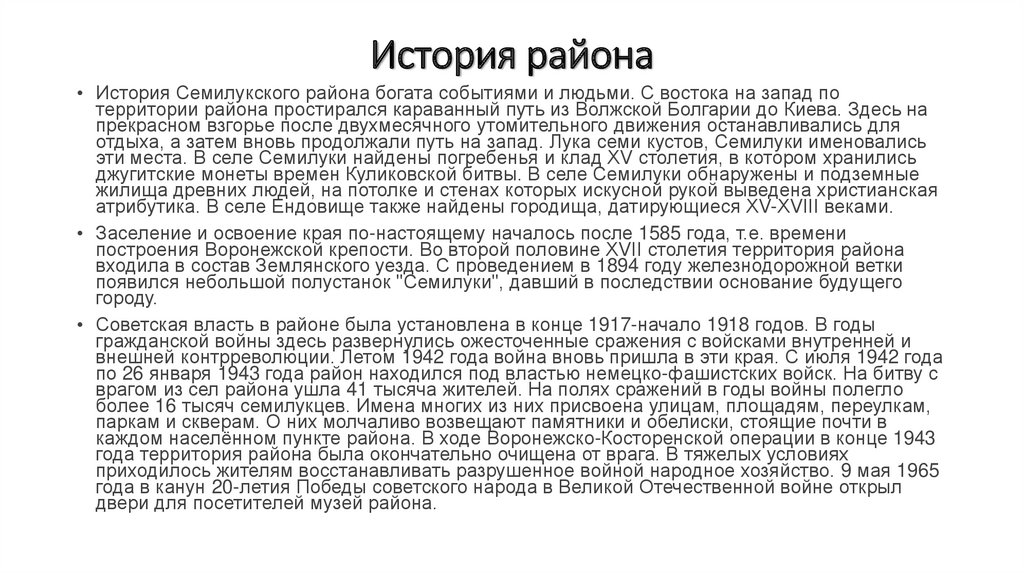 История района• История Семилукского района богата событиями и людьми. С востока на запад по