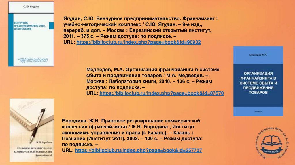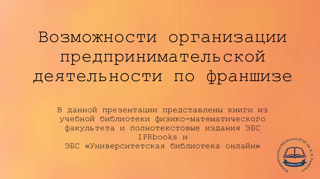 Возможности организации предпринимательской деятельности по франшизе. Книги из учебной библиотеки