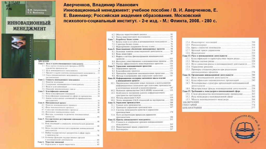 Аверченков, Владимир ИвановичИнновационный менеджмент: учебное пособие / В. И. Аверченков, Е.