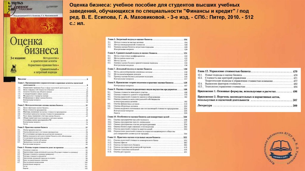 Оценка бизнеса: учебное пособие для студентов высших учебныхзаведений, обучающихся по специальности "Финансы и кредит" / под