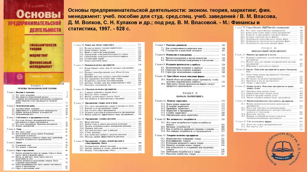 Основы предпринимательской деятельности: эконом. теория, маркетинг, фин.менеджмент: учеб. пособие для студ. сред.спец. учеб. заведений / В. М. Власова,