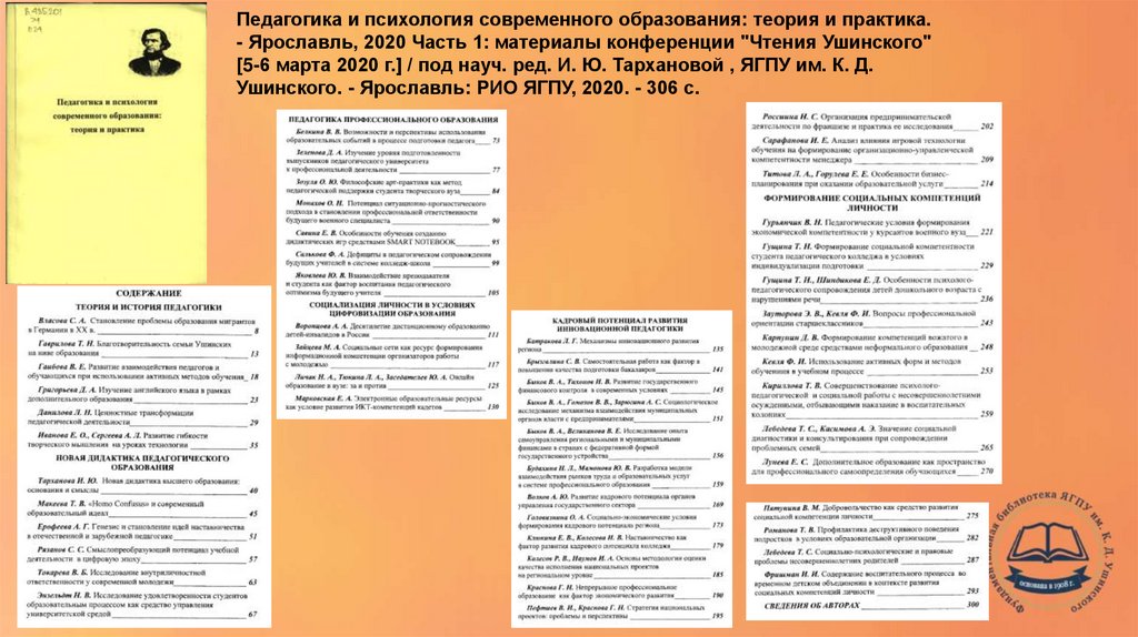 Ушинского. - Ярославль: РИО ЯГПУ, 2020. - 306 с.