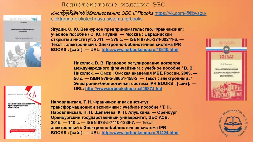 по использованию ЭБС IPRbooks https://vk.com/@libyspuelektronno-bibliotechnaya-sistema-iprbooks