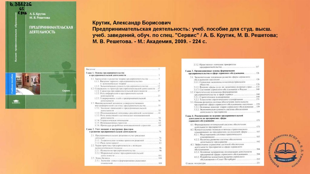 Крутик, Александр БорисовичПредпринимательская деятельность: учеб. пособие для студ. высш.