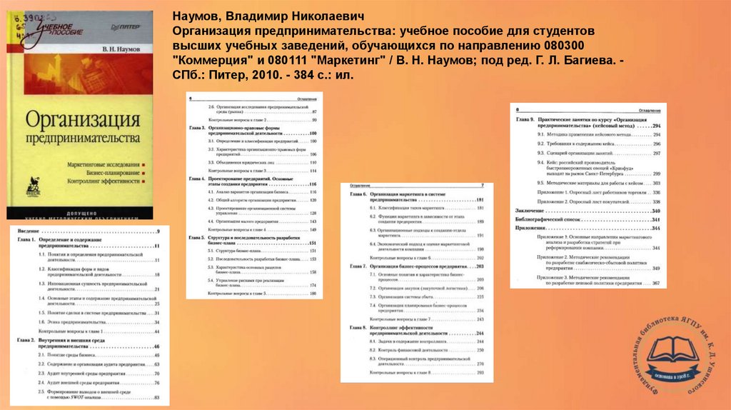 Наумов, Владимир НиколаевичОрганизация предпринимательства: учебное пособие для студентов