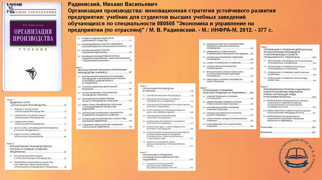 Радиевский, Михаил ВасильевичОрганизация производства: инновационная стратегия устойчивого развития
