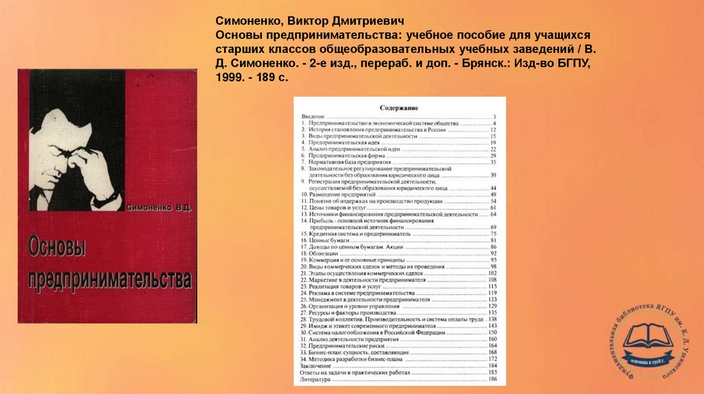 Симоненко, Виктор ДмитриевичОсновы предпринимательства: учебное пособие для учащихся