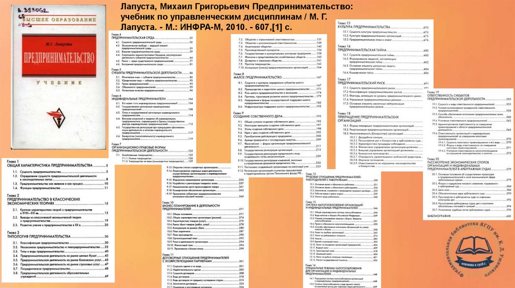 Лапуста, Михаил Григорьевич Предпринимательство:учебник по управленческим дисциплинам / М. Г.