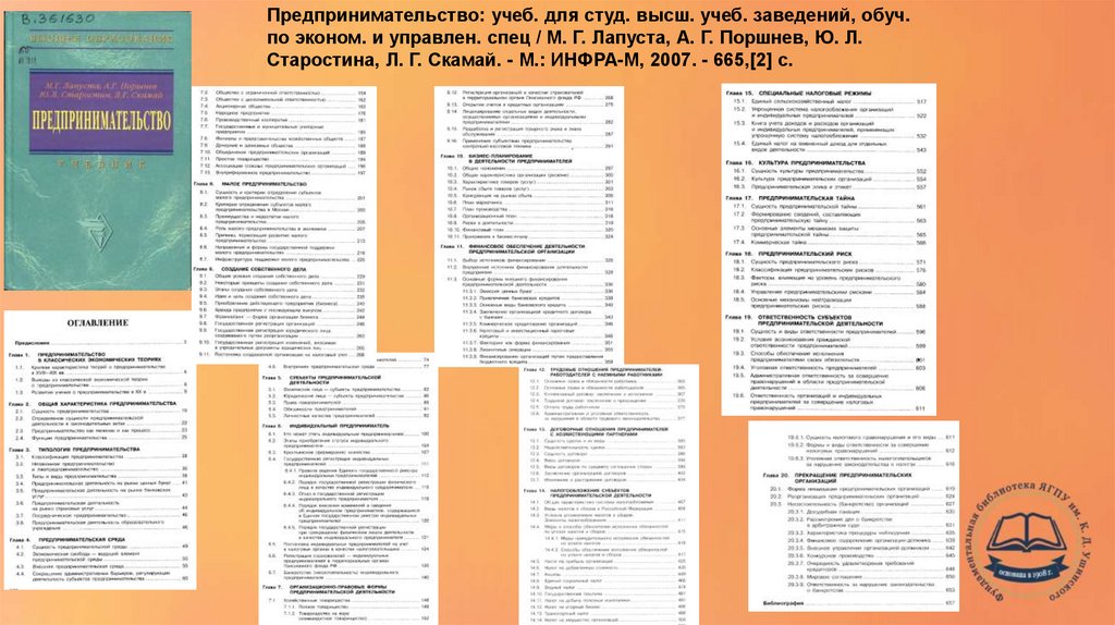 Предпринимательство: учеб. для студ. высш. учеб. заведений, обуч.по эконом. и управлен. спец / М. Г. Лапуста, А. Г. Поршнев, Ю. Л.