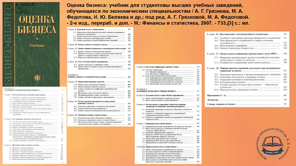 Оценка бизнеса: учебник для студентовы высших учебных заведений,обучающихся по экономическим специальностям / А. Г. Грязнова, М. А.