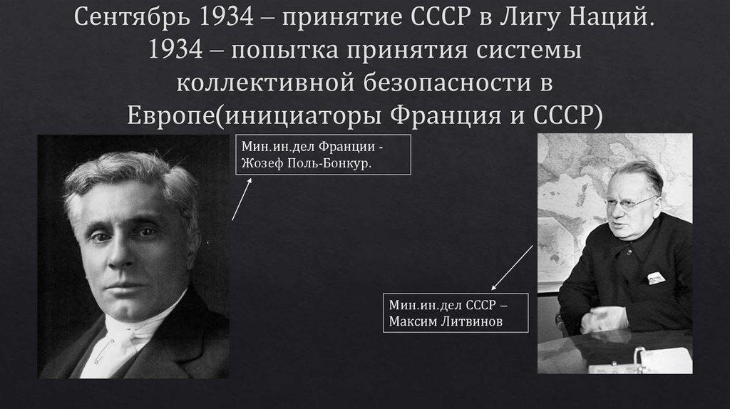 Мин.ин.дел Франции Жозеф Поль-Бонкур.Мин.ин.дел СССР –