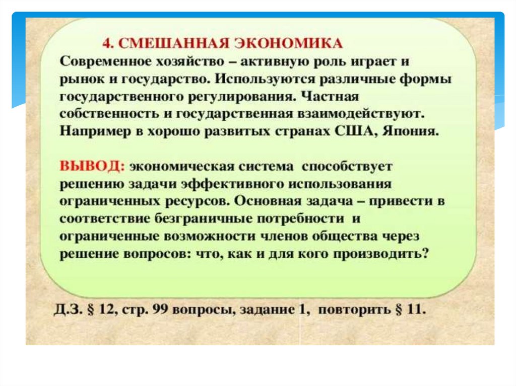 Проверка пройденного темы:«Экономика и ее роль в жизни