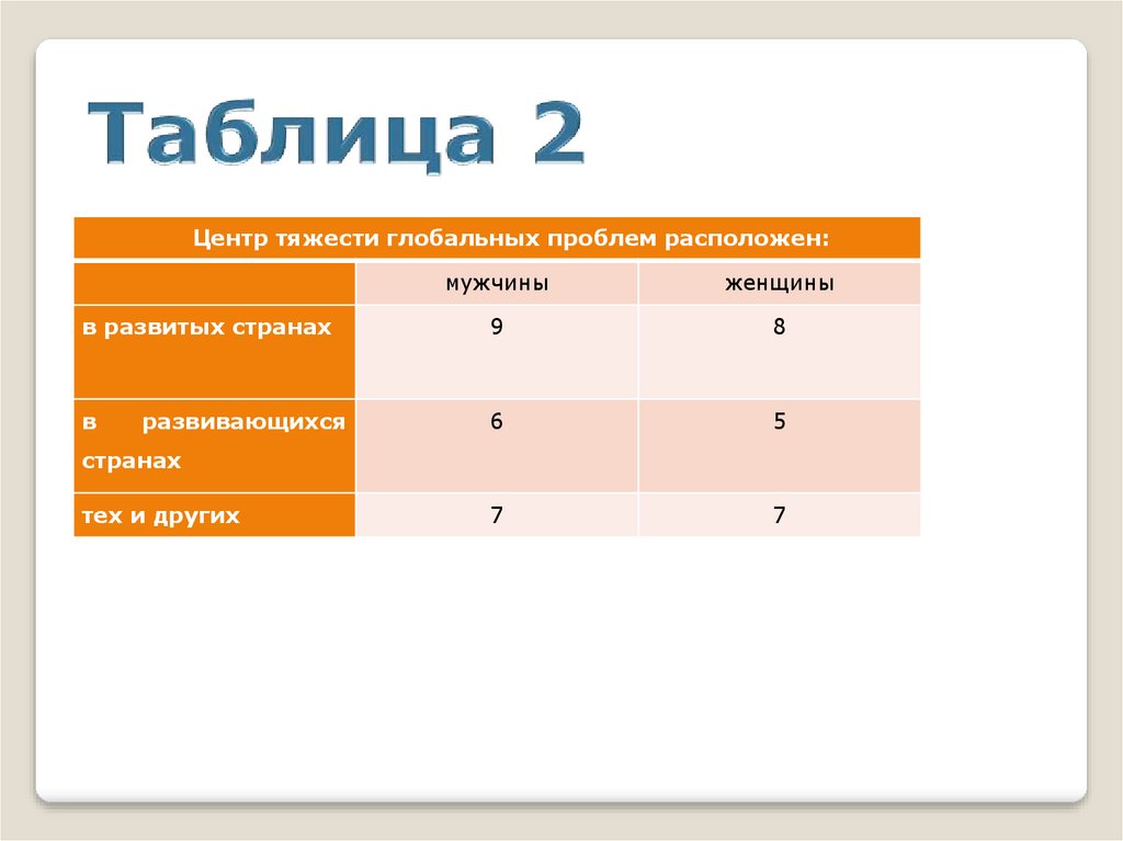 Центр тяжести глобальных проблем расположен:мужчины