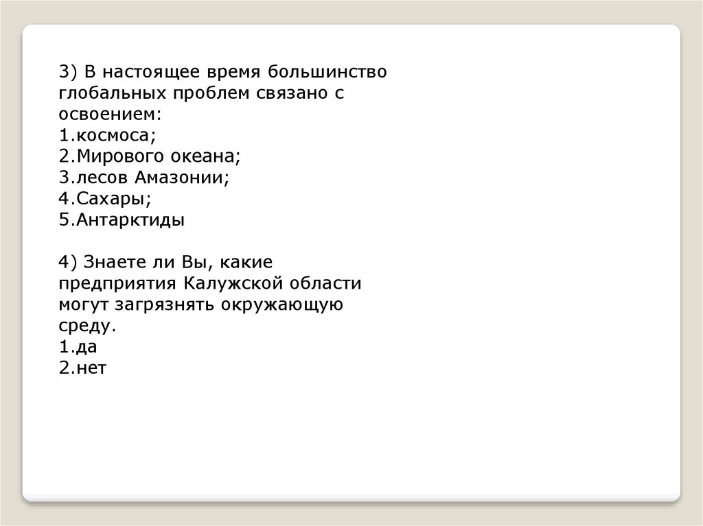 3) В настоящее время большинствоглобальных проблем связано с
