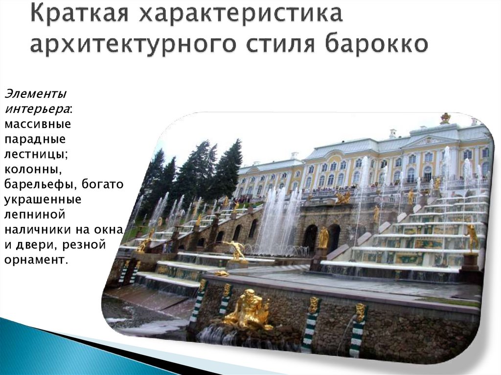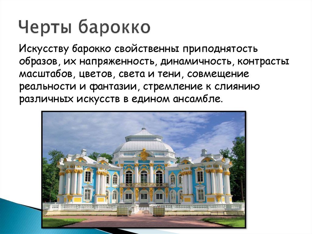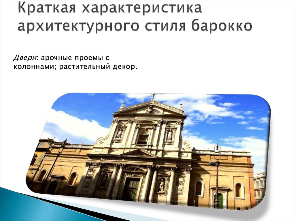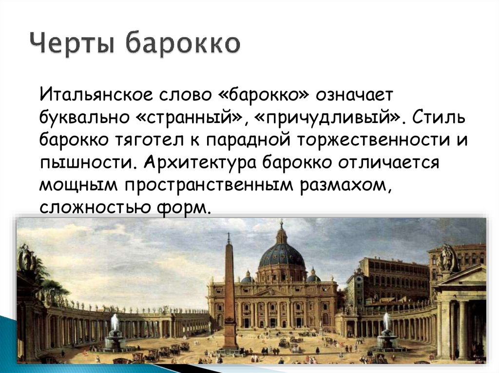 Итальянское слово «барокко» означаетбуквально «странный», «причудливый». Стиль