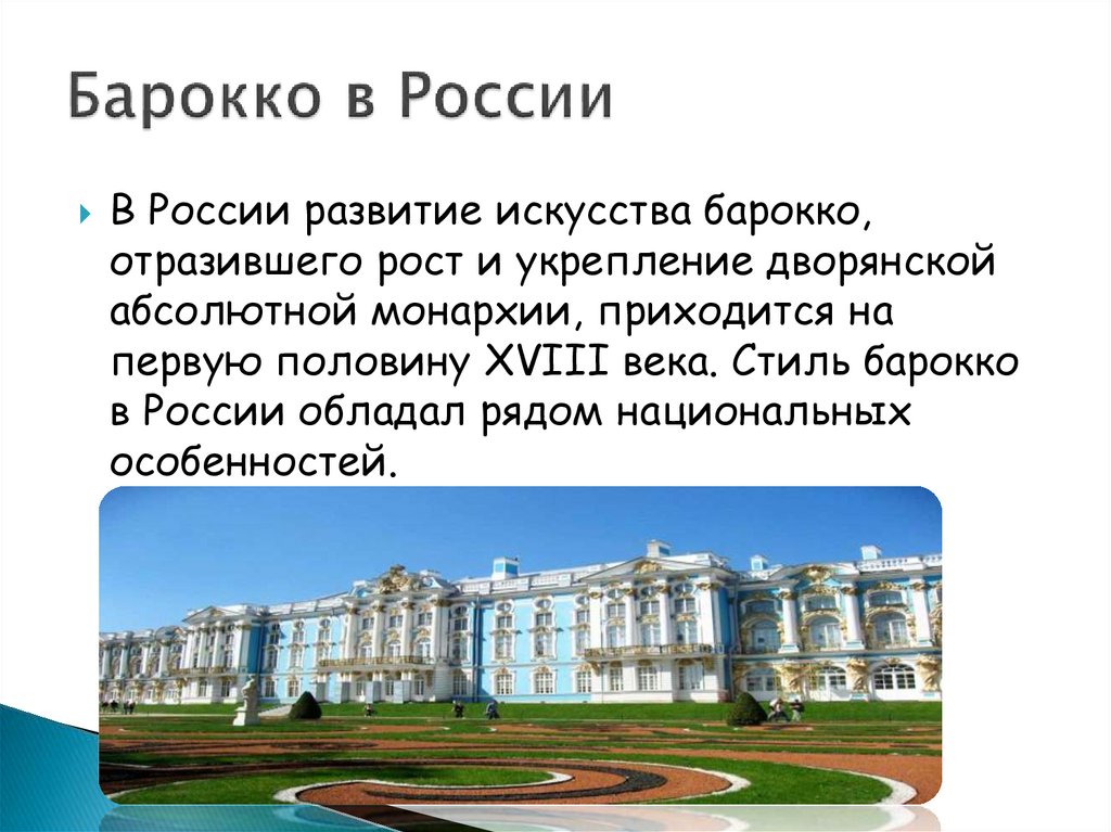 В России развитие искусства барокко,отразившего рост и укрепление дворянской