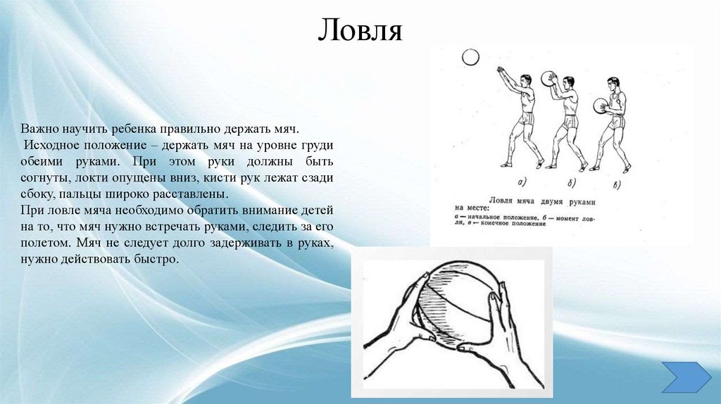 ЛовляВажно научить ребенка правильно держать мяч.