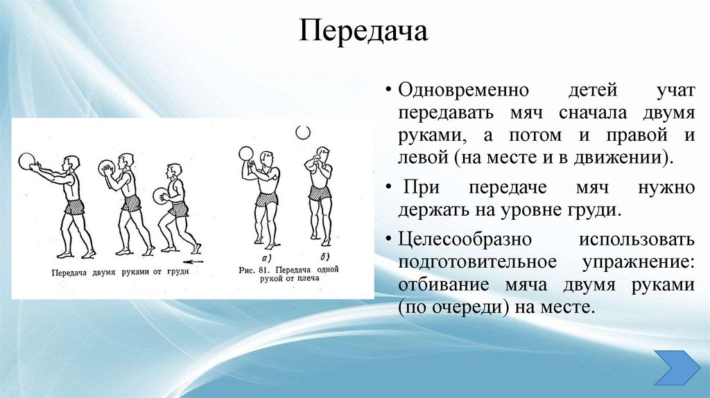 передавать мяч сначала двумя