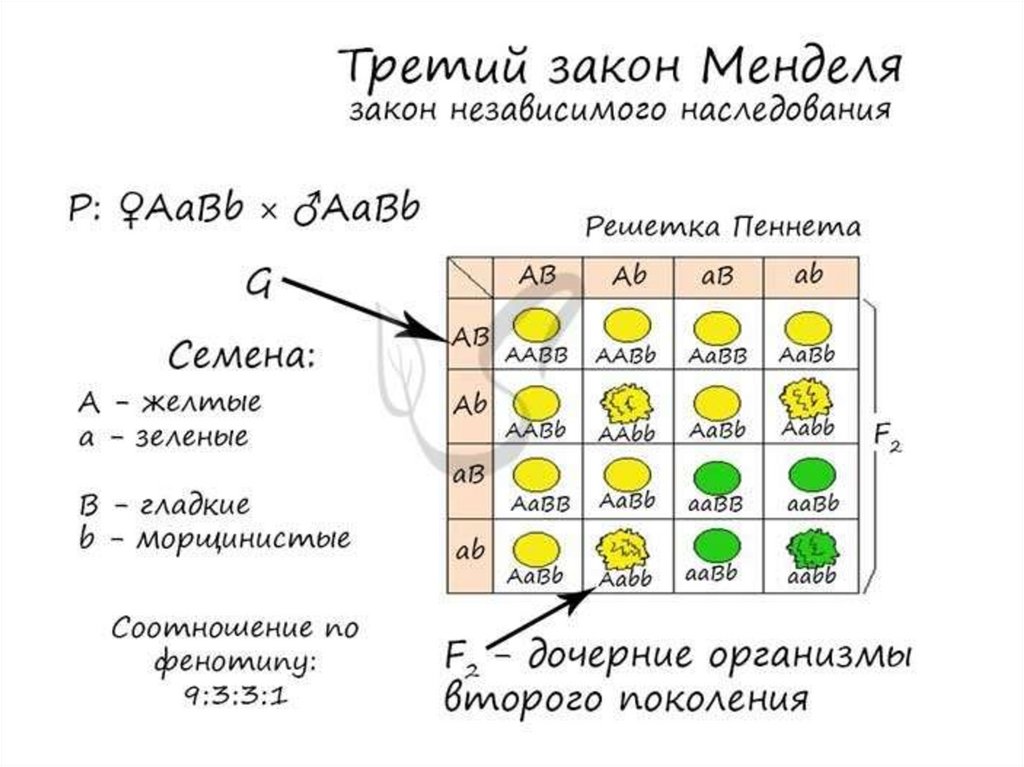 ранее не существовали. Соотношение фенотипов 9 : 3 : 3 : 1.