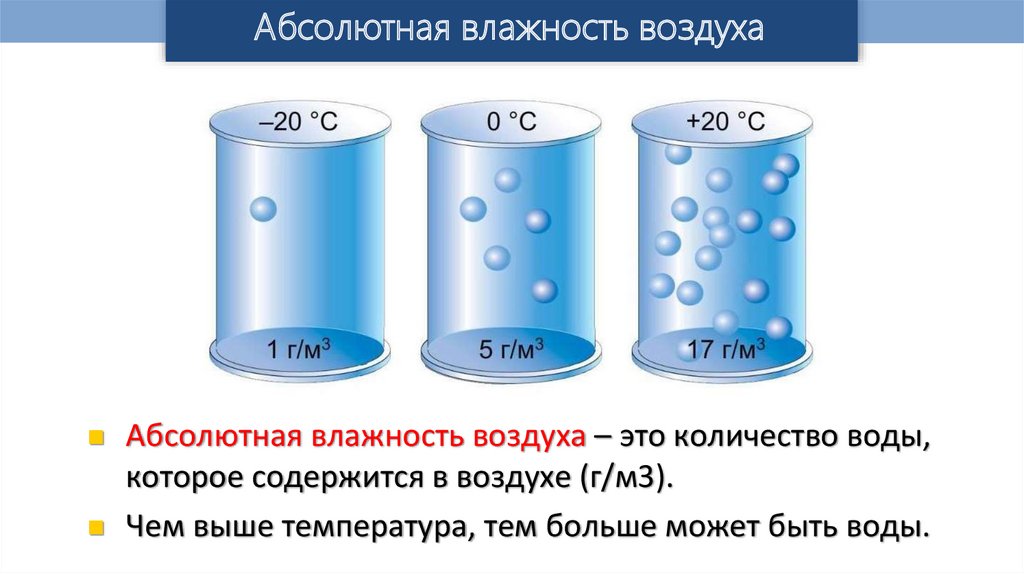 Абсолютная влажность воздухаАбсолютная влажность воздуха – это количество воды,