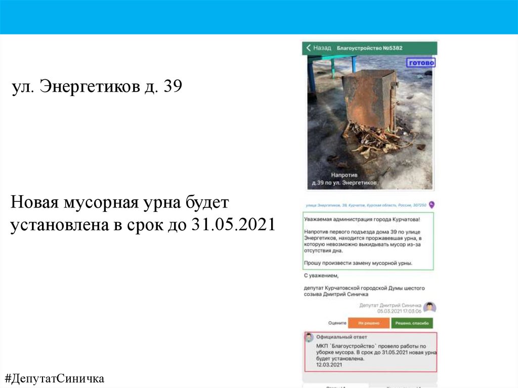 ул. Энергетиков д. 39Новая мусорная урна будет