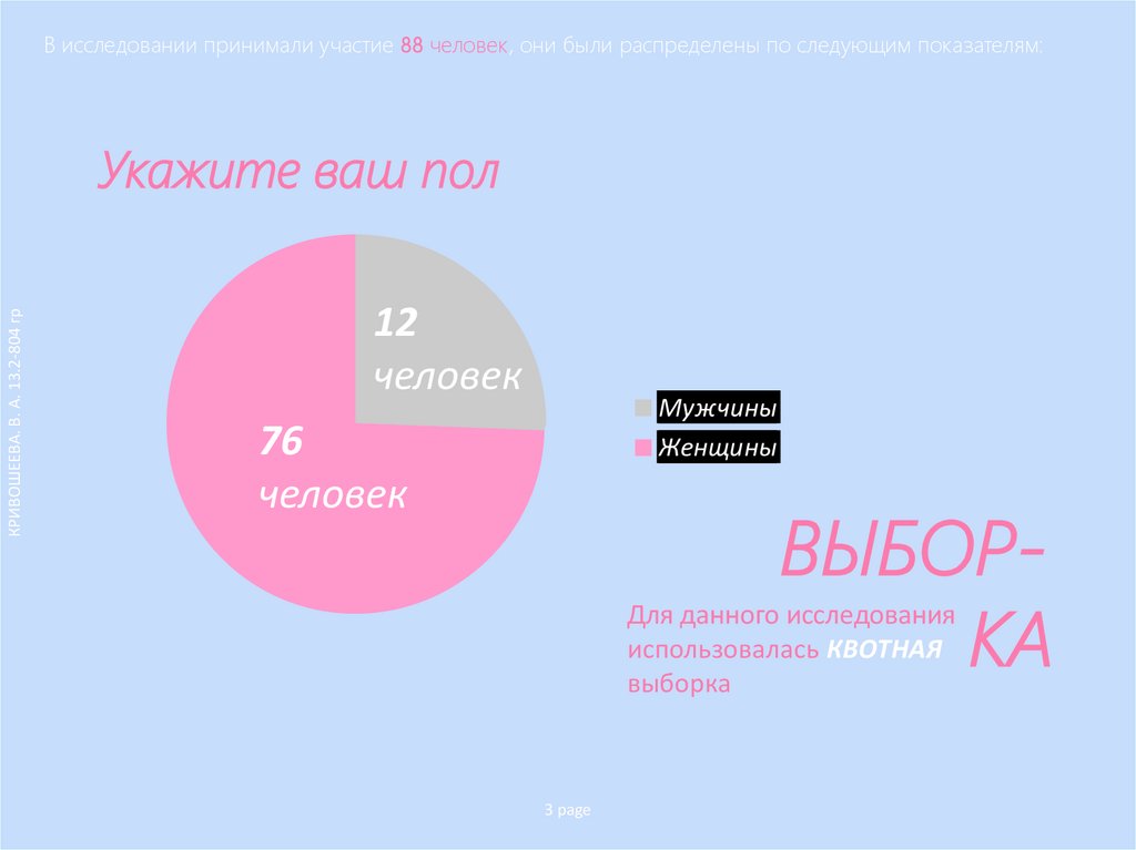 В исследовании принимали участие 88 человек, они были распределены по следующим показателям:КРИВОШЕЕВА. В. А. 13.2-804 гр