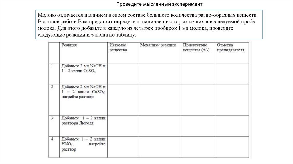 Проведите мысленный экспериментМолоко отличается наличием в своем составе большого количества разно-образных веществ.