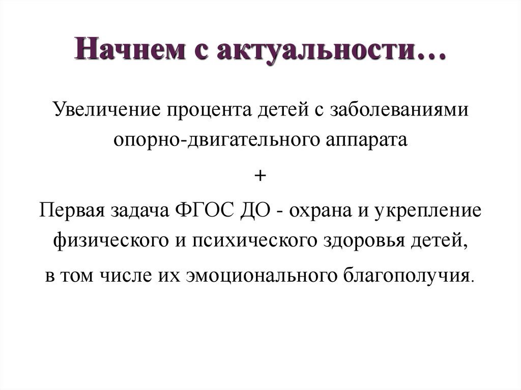 Начнем с актуальности…Увеличение процента детей с заболеваниями