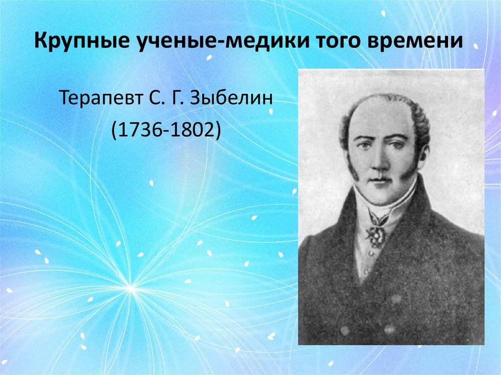 Крупные ученые-медики того времениТерапевт С. Г. Зыбелин