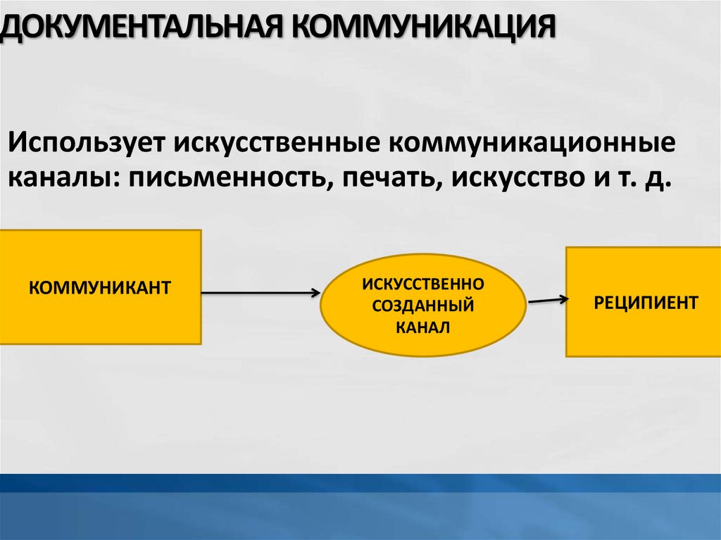 ДОКУМЕНТАЛЬНАЯ КОММУНИКАЦИЯИспользует искусственные коммуникационные