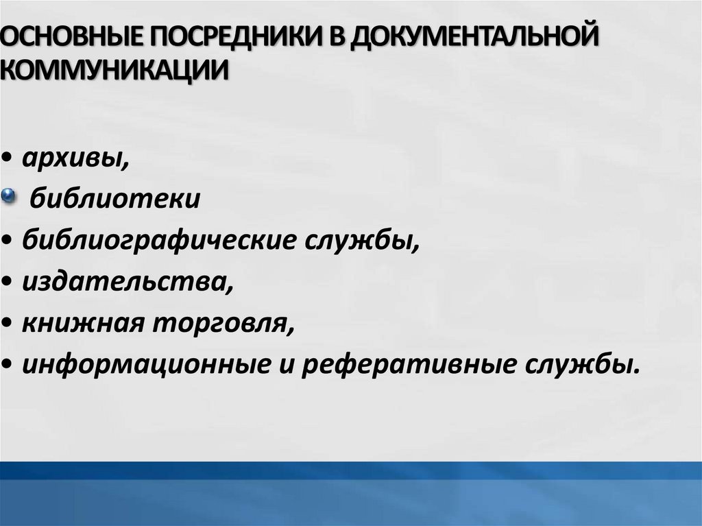 ОСНОВНЫЕ ПОСРЕДНИКИ В ДОКУМЕНТАЛЬНОЙКОММУНИКАЦИИ
