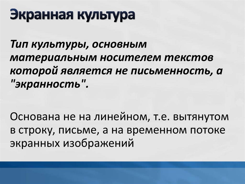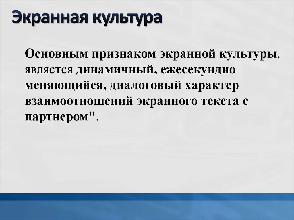 Основным признаком экранной культуры,является динамичный, ежесекундно