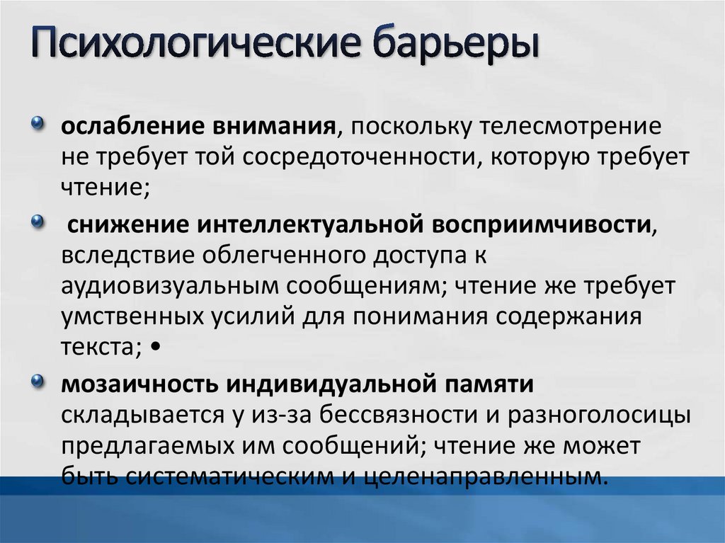 ослабление внимания, поскольку телесмотрениене требует той сосредоточенности, которую требует