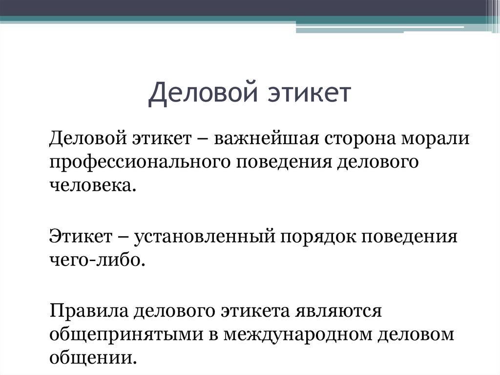 Деловой этикетДеловой этикет – важнейшая сторона морали