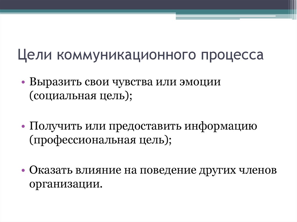 Цели коммуникационного процесса• Выразить свои чувства или эмоции