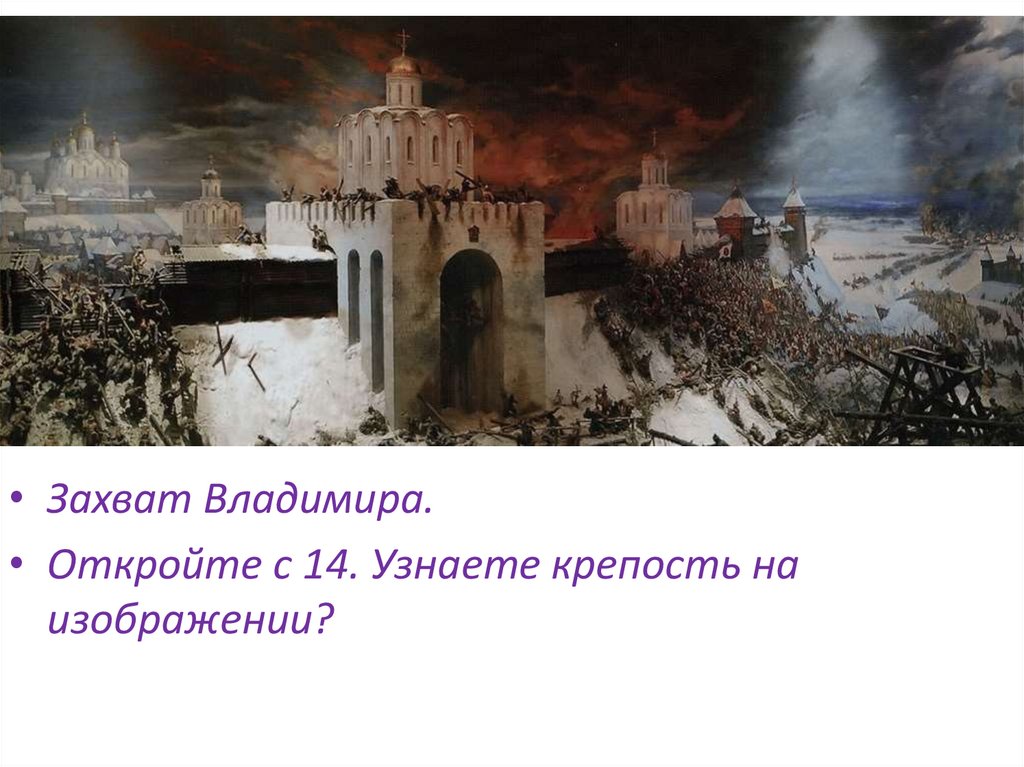 • Захват Владимира.• Откройте с 14. Узнаете крепость на