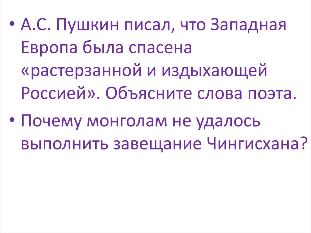 • А.С. Пушкин писал, что ЗападнаяЕвропа была спасена