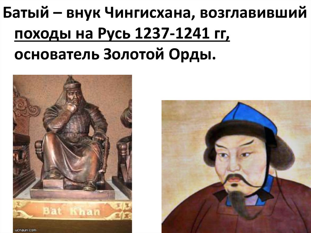 Батый – внук Чингисхана, возглавившийпоходы на Русь 1237-1241 гг,