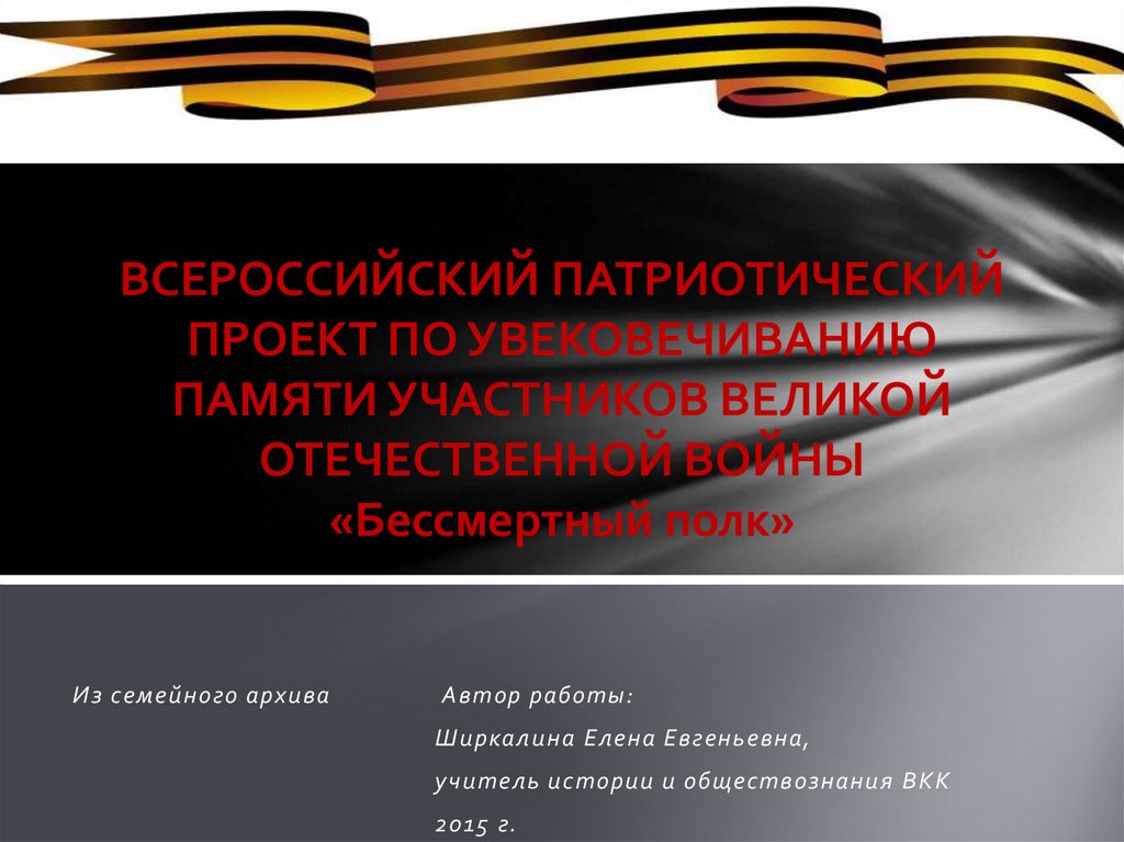 ВСЕРОССИЙСКИЙ ПАТРИОТИЧЕСКИЙПРОЕКТ ПО УВЕКОВЕЧИВАНИЮ