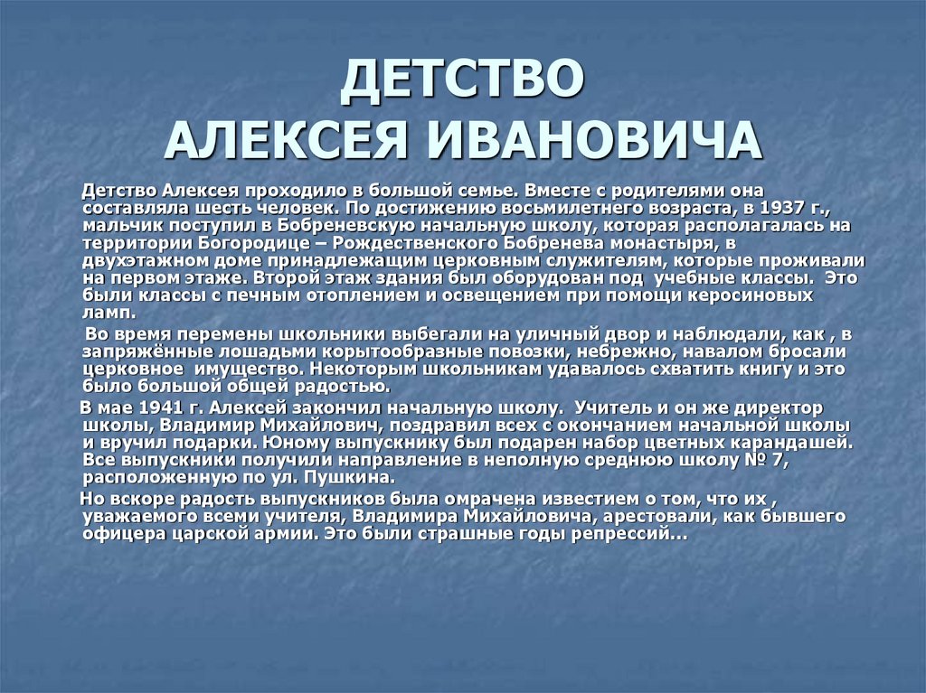 ДЕТСТВОАЛЕКСЕЯ ИВАНОВИЧА