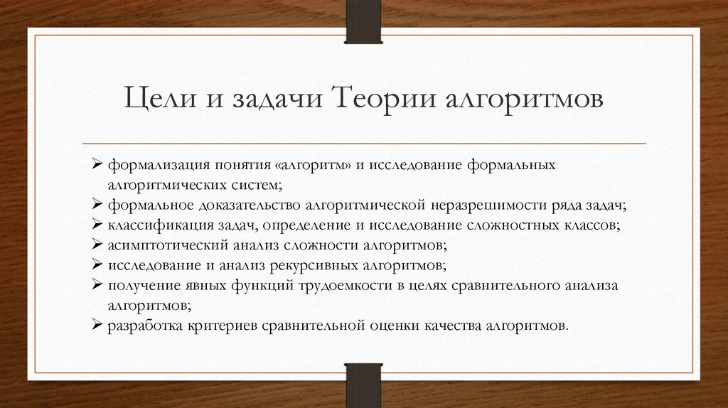 Цели и задачи Теории алгоритмовформализация понятия «алгоритм» и исследование формальных