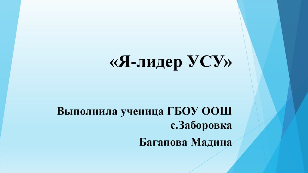 «Я-лидер УСУ»Выполнила ученица ГБОУ ООШ