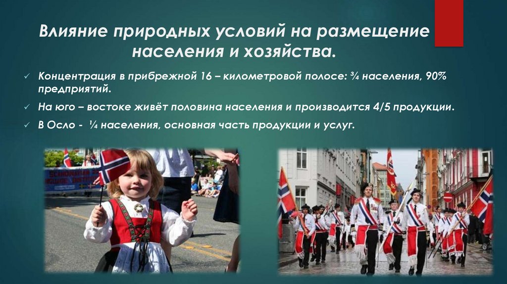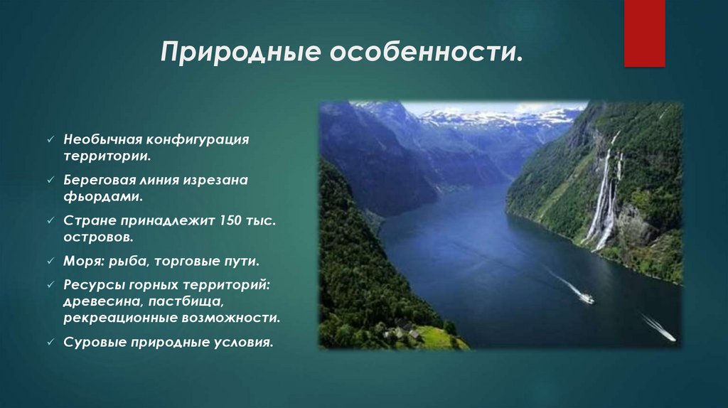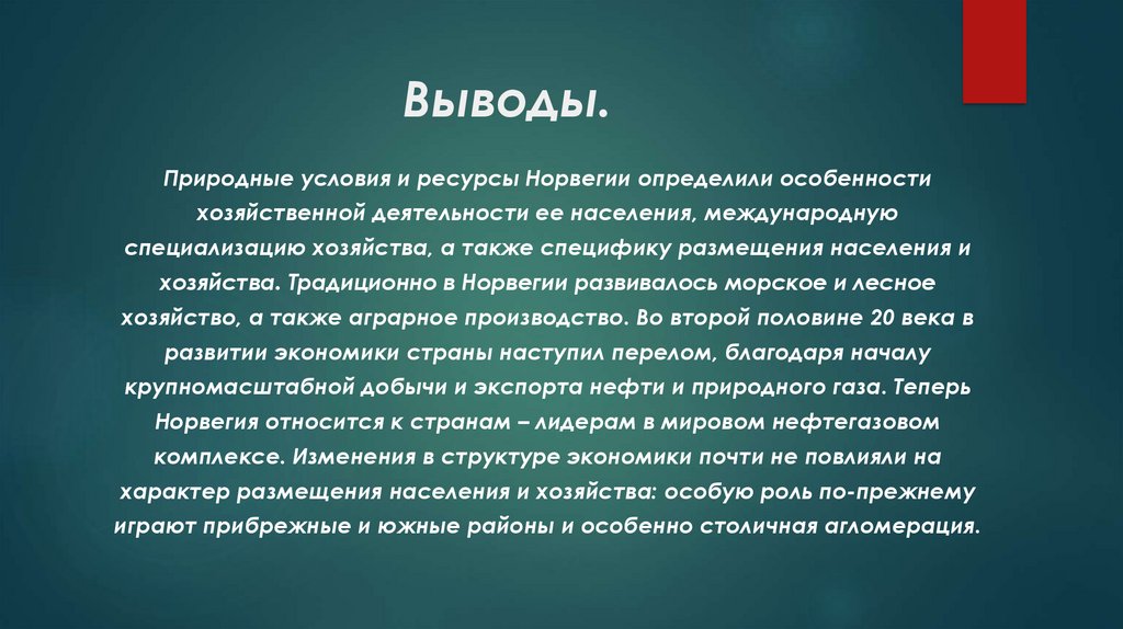 Выводы.Природные условия и ресурсы Норвегии определили особенности