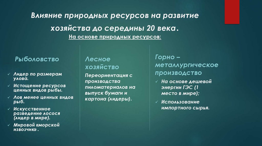Влияние природных ресурсов на развитиехозяйства до середины 20 века.