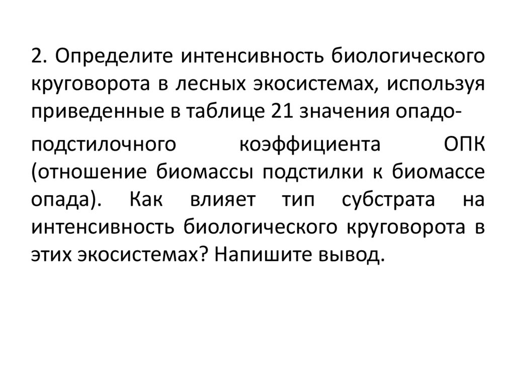 2. Определите интенсивность биологическогокруговорота в лесных экосистемах, используя