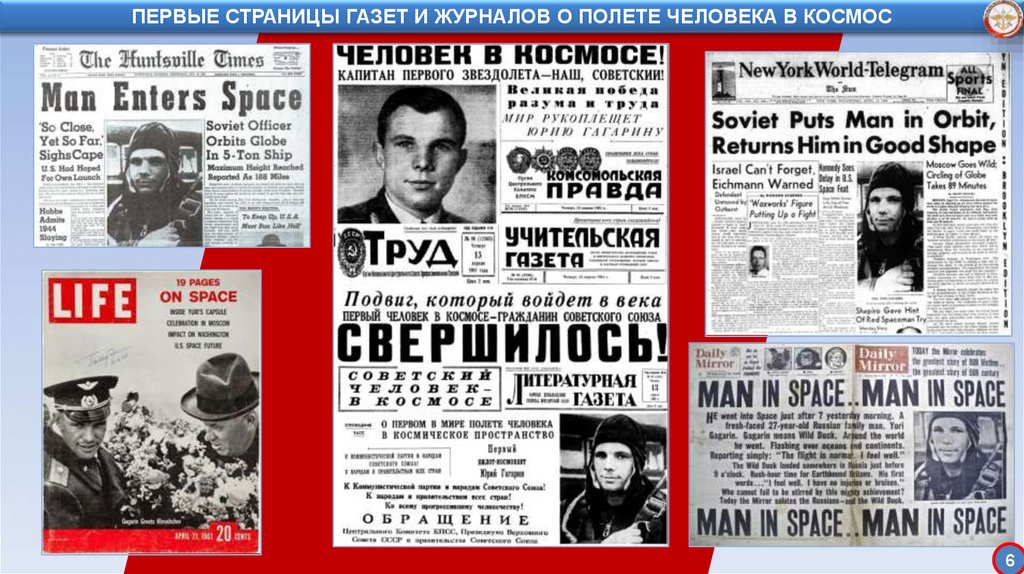 ПЕРВЫЕ СТРАНИЦЫ ГАЗЕТ И ЖУРНАЛОВ О ПОЛЕТЕ ЧЕЛОВЕКА В КОСМОС6