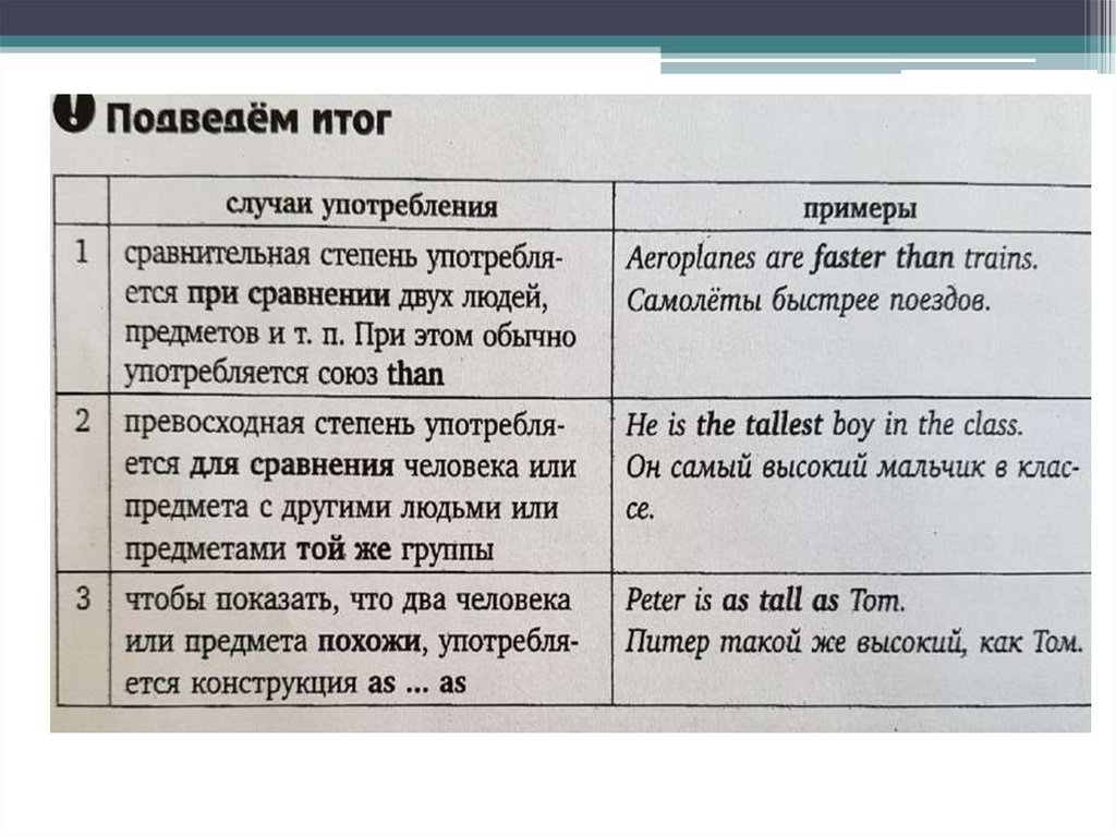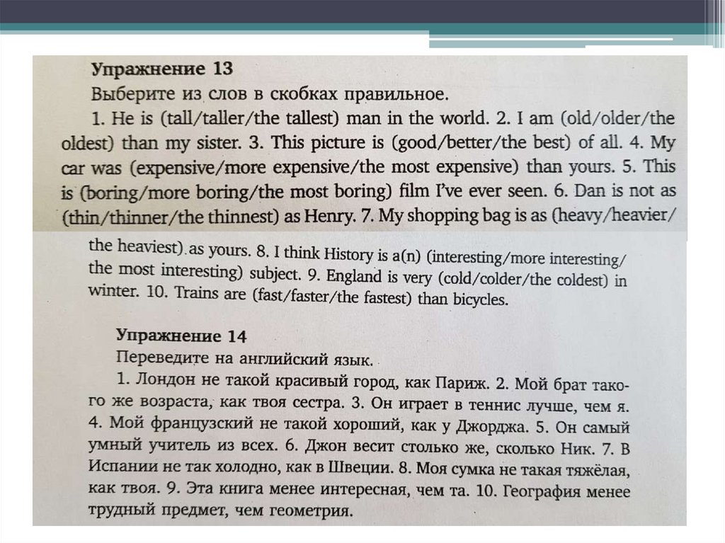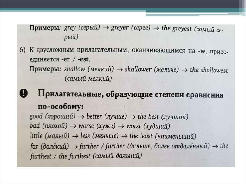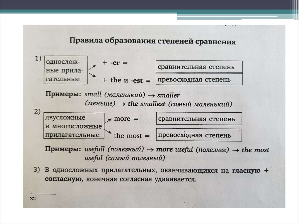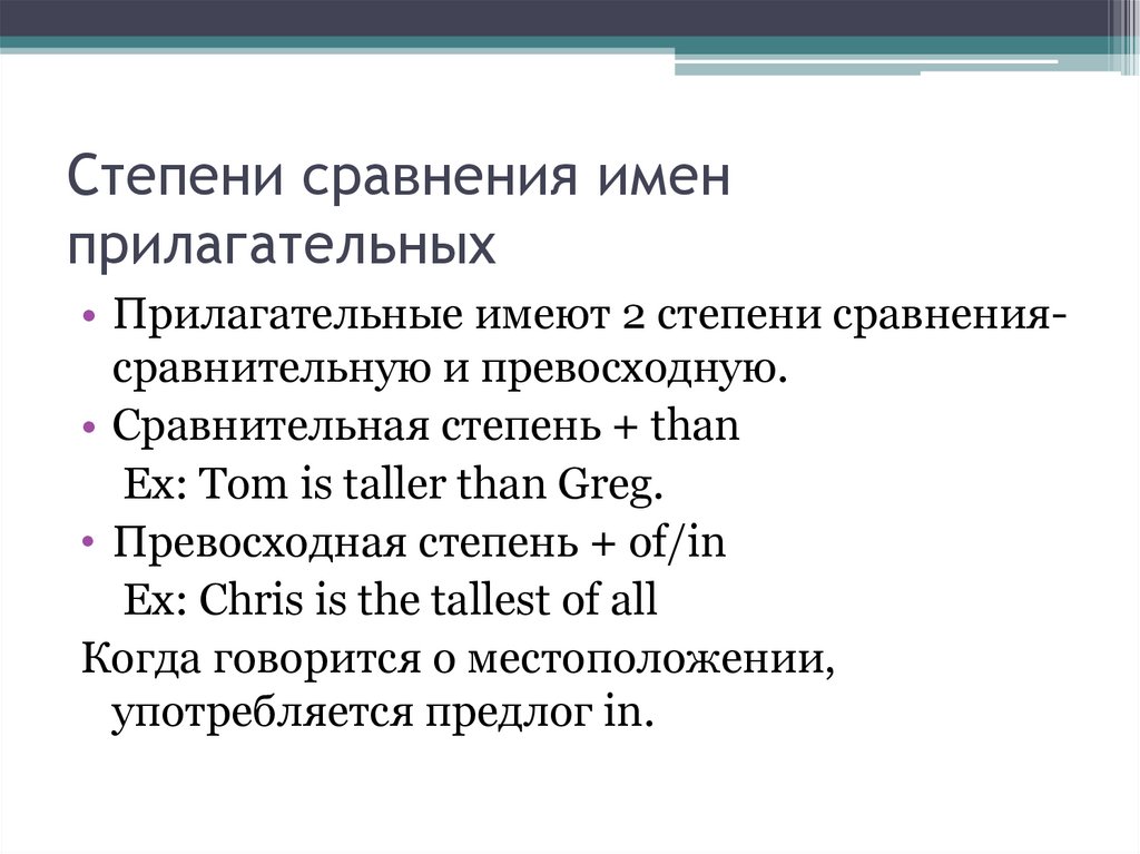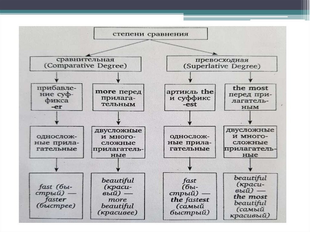 • Прилагательные имеют 2 степени сравнениясравнительную и превосходную.