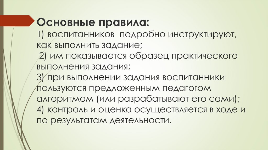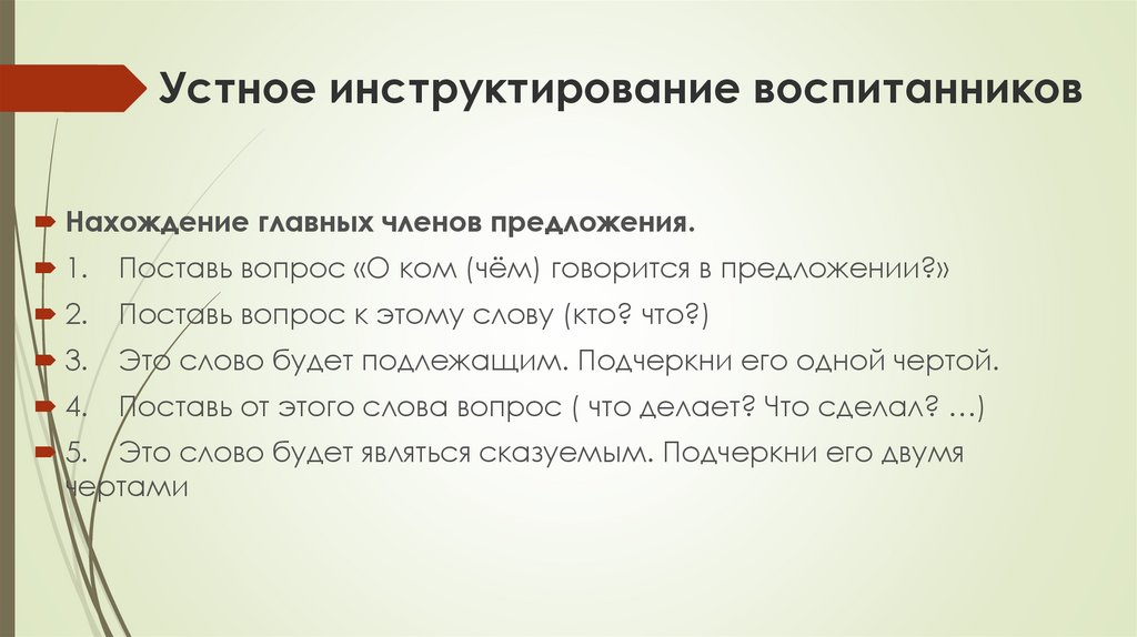 Устное инструктирование воспитанниковНахождение главных членов предложения.
