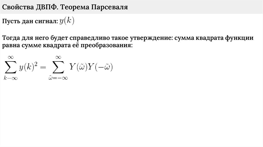 Свойства ДВПФ. Теорема ПарсеваляПусть дан сигнал: