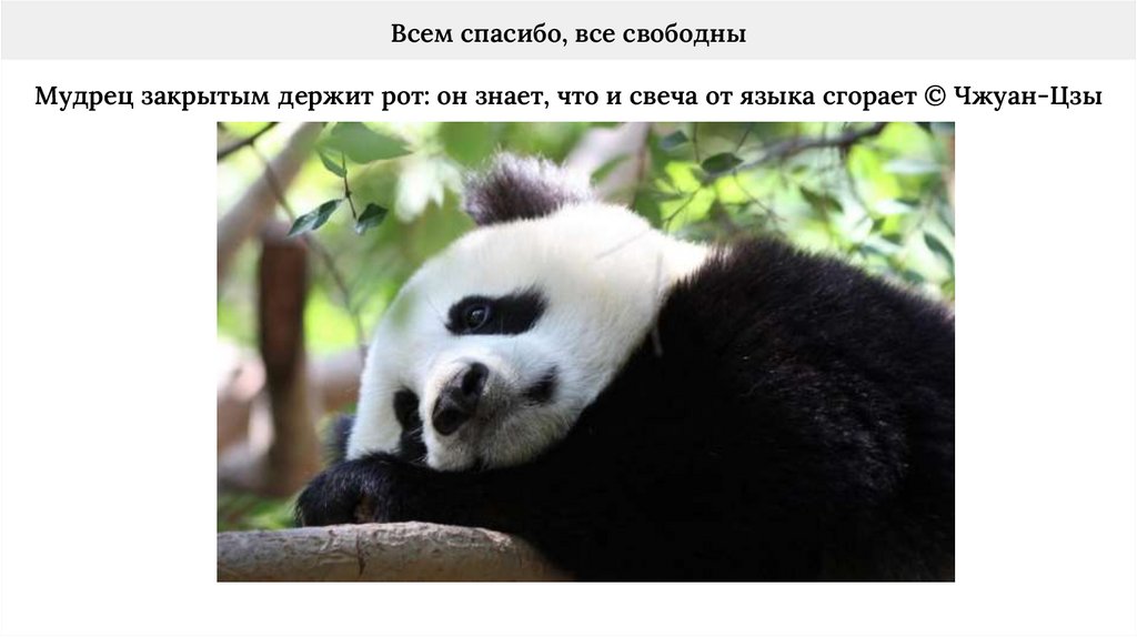 Всем спасибо, все свободныМудрец закрытым держит рот: он знает, что и свеча от языка сгорает © Чжуан-Цзы